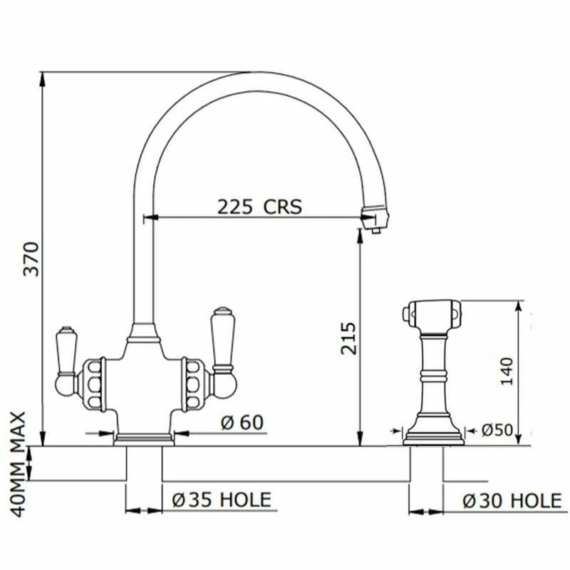 - Spout Reach – 225mm
