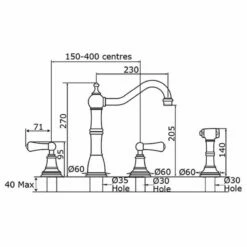 Designed to be deck mounted, the mixer comes with beautiful lever handles and a matching pull out hand spray. The separate pull out spray is easy to use and versatile, great for help when cooking, cleaning and filling large pots and pans. Not only that, the handles are also insulated, paired with a flexible hose that ensures safety and convenience.