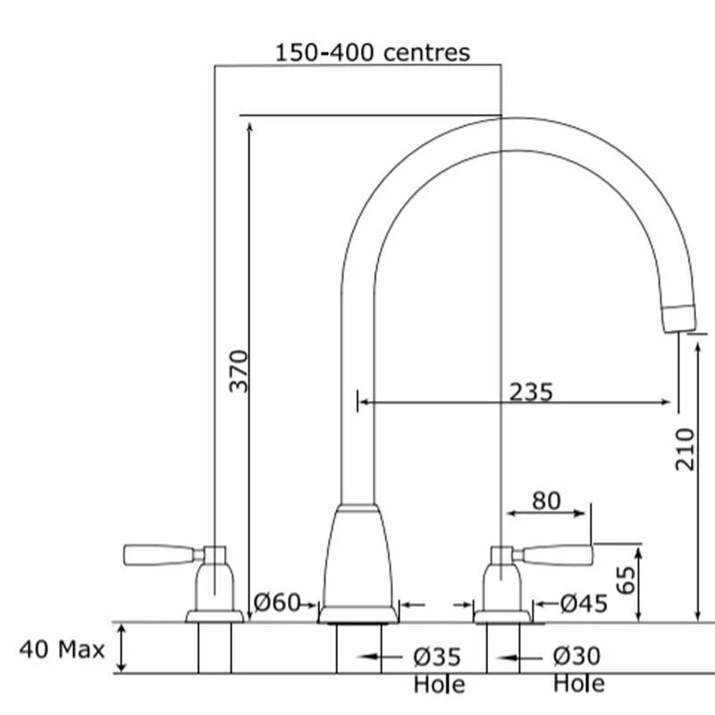 - Tap Hole Centres – 150-400mm