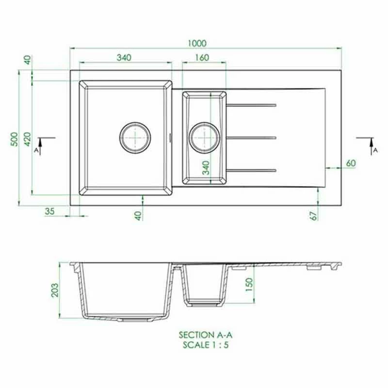 - 1.5 bowl granite inset sink