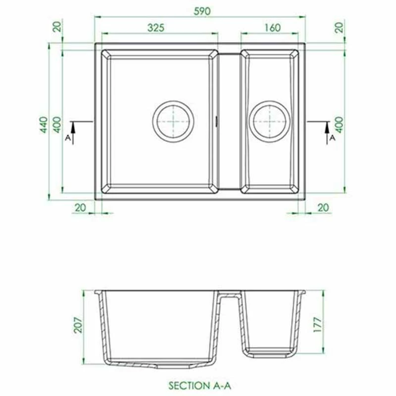 - Second bowl dimensions (WxDxH): 160x400x177mm