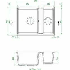 - Main Bowl Dimensions: 207 x 325 x 400mm