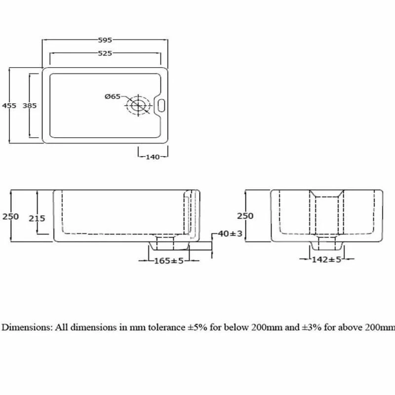 - Dimensions: 250 x 595 x 455mm