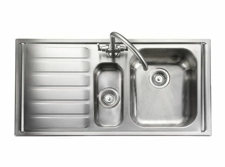 The Rangemaster Manhattan 1.5 Bowl Lh Drainer Stainless Steel Inset Kitchen Sink boasts a large recessed drainer preventing water spillage and low profile edges providing a flush finished appearance.