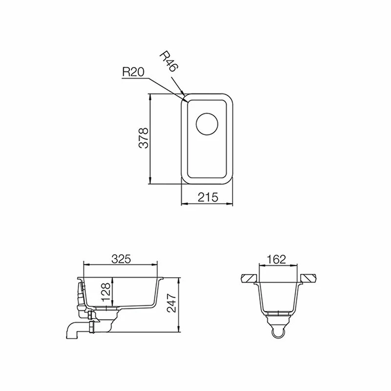 Rangemaster Paragon Compact 0.5 Bowl Igneous Granite Undermount Kitchen Sink (Crystal White) PAR1632CW/ – Details