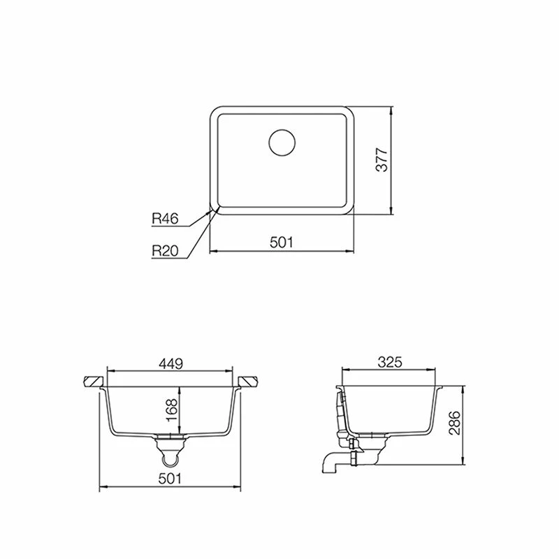 Rangemaster Paragon Compact 1 Bowl Igneous Granite Undermount Kitchen Sink (Dove Grey) PAR4432DG/ – Details