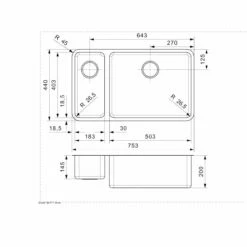 Reginox Ohio 18 X 40 + 50 X 40 Elite Integrated Kitchen Sink – Main Bowl Right – OHIO 18X40+50X40 L