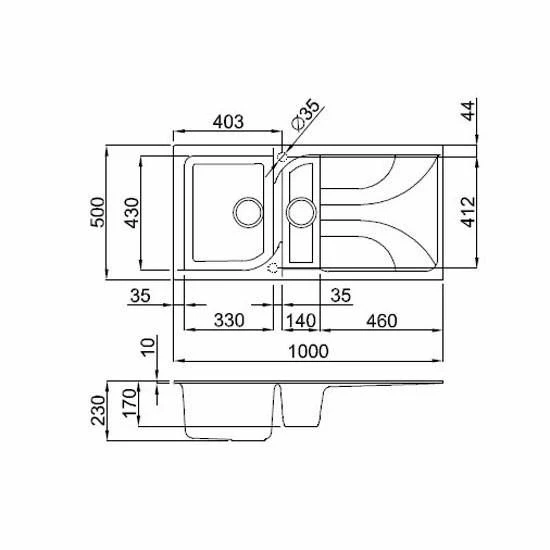 - Sink unit dimensions: 330 x 430mm / 140 x 430mm
