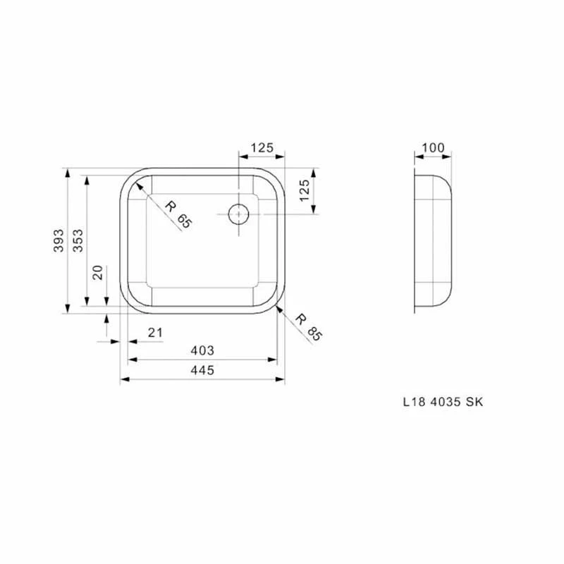 ReginoxL18 4035 SK 10CM NOF Kitchen Sink 100mm Depth without Overflow – Stainless Steel – R32060