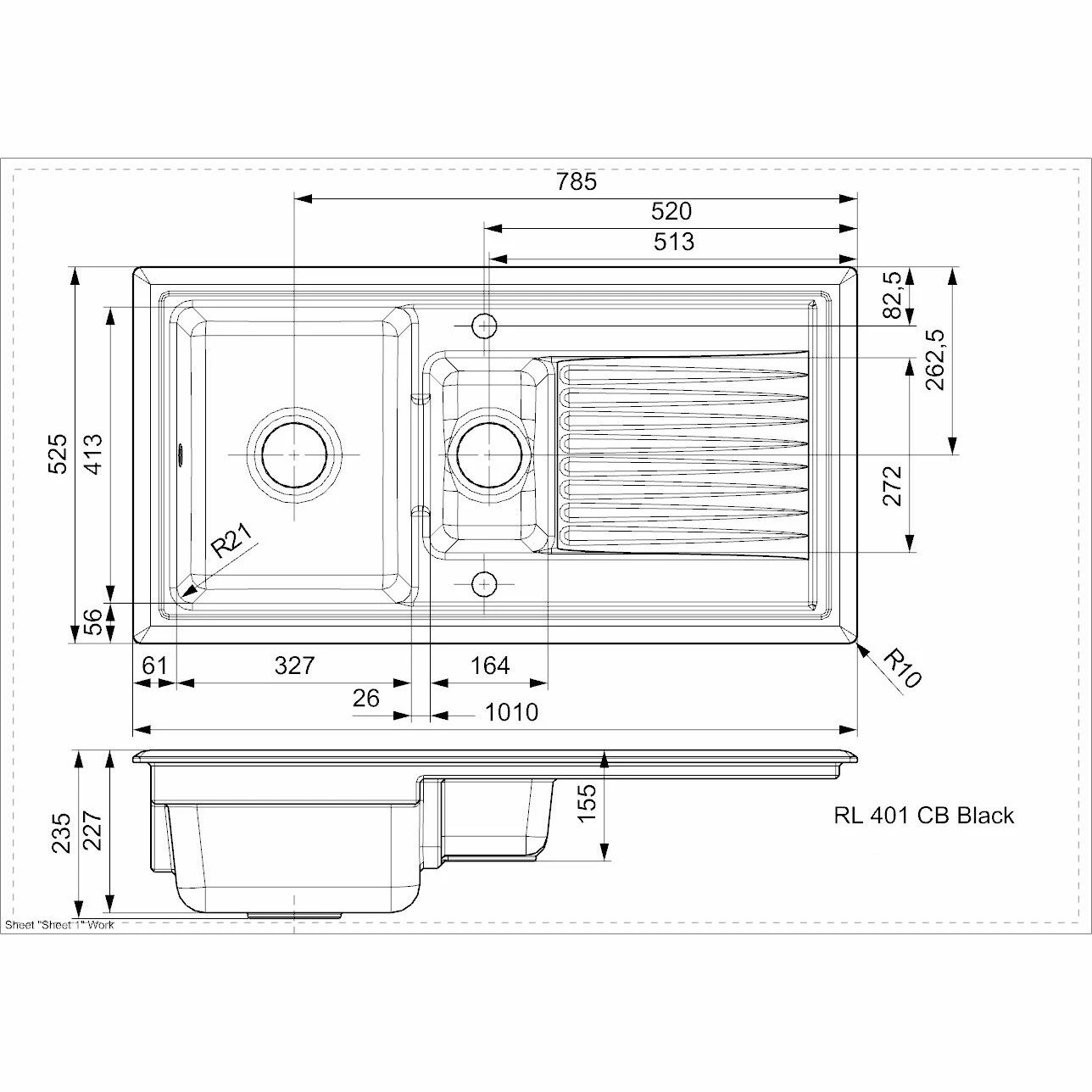 Reginox Regi-Ceramic 1.5 Bowl Kitchen Sink Including Waste – Black – RL 401 CB
