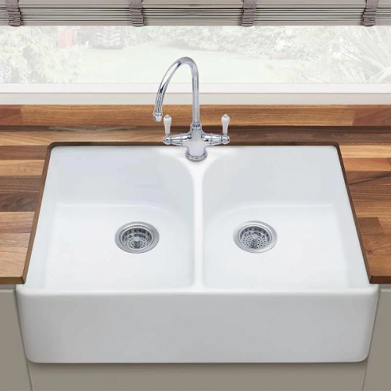 Thomas Denby Heritage 800mm Ceramic Double Bowl Kitchen Sink – White – Details